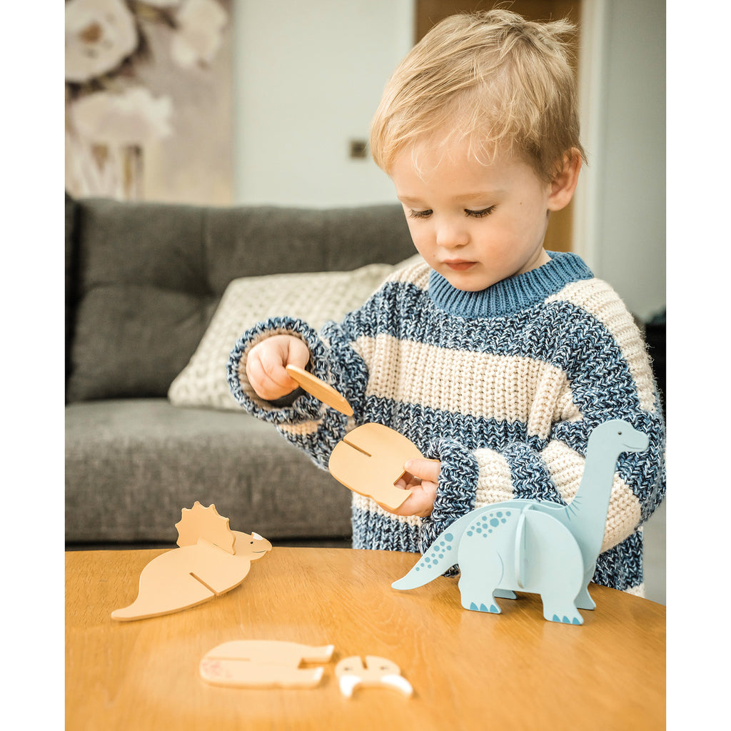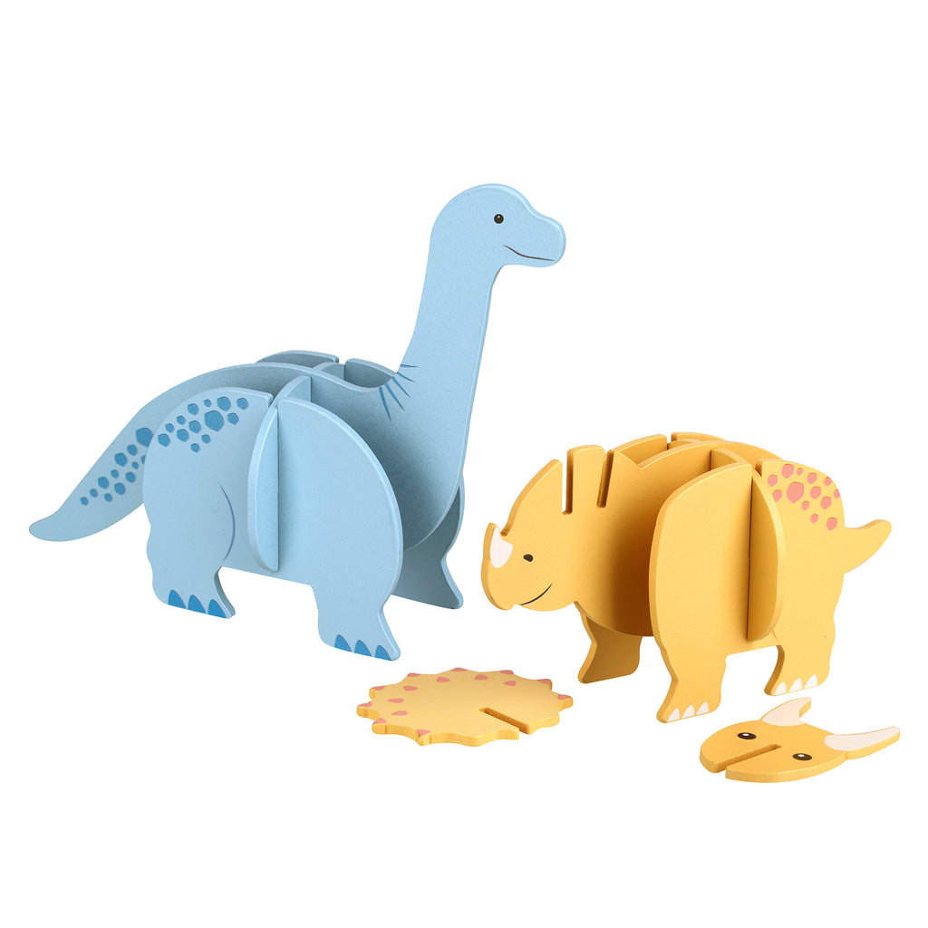 • Slot the pieces together to create 2 free-standing dinosaurs. No glue or tools required!