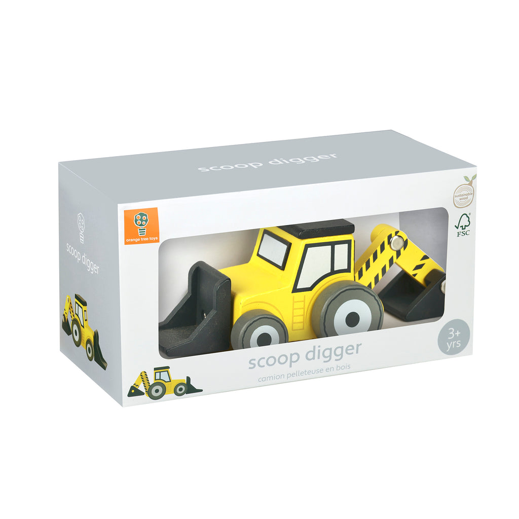 Little builders will love this sturdy wooden scoop digger. This scoop digger is perfect for imaginative play, developing motor skills, adding fun to any construction adventure.