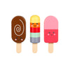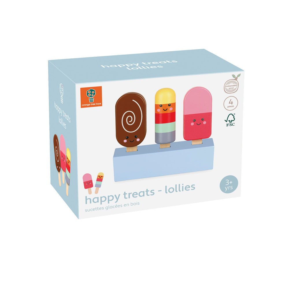 Cool down playtime with this wooden set of lollies! This charming set includes three brightly painted ice lollies & a sturdy block stand. Perfect for pretend shops, cafés, or summertime play
